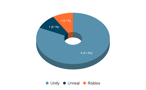 Most teams chose to develop their games using Unity, but one team chose to use Unreal and another team chose to use Roblox Studio. Unity was the most utilized engine, but it was exciting to see experimentation across multiple platforms.
